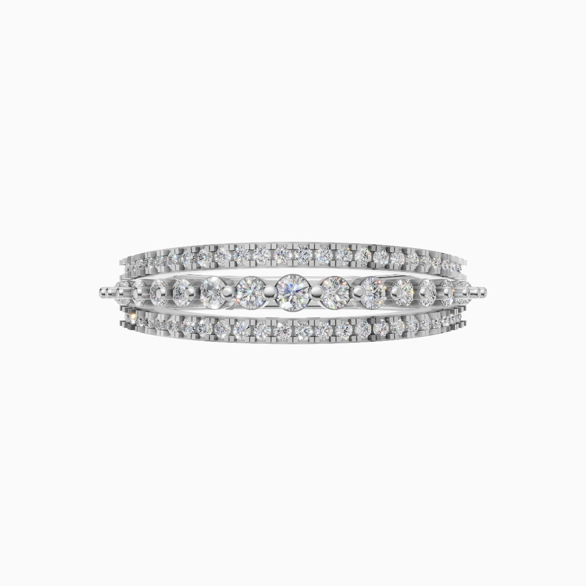 The SILARA 925 Sterling Silver Multi-Row Sparkle Ring highlights multiple rows of shimmering stones, creating a bold and luxurious band design. The layered structure adds depth and brilliance....
